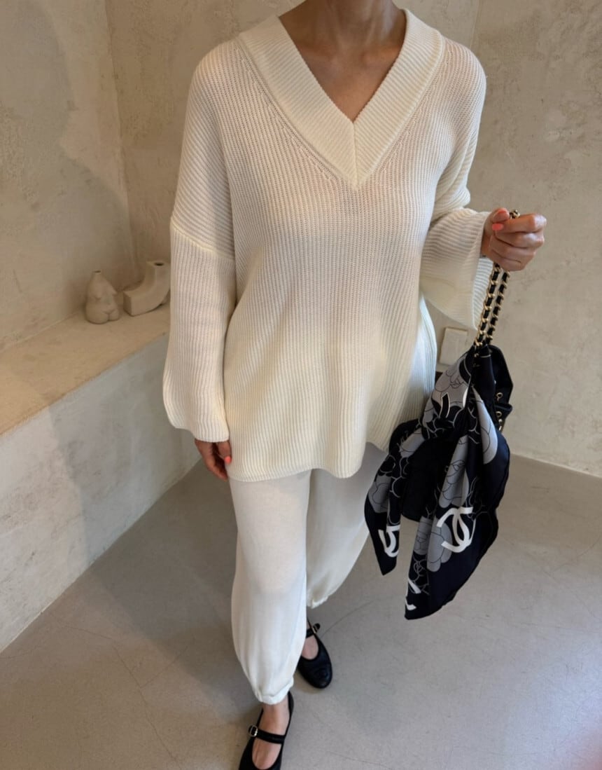 新作ミックスVニットで過ごす、ゆったりとしたひととき。