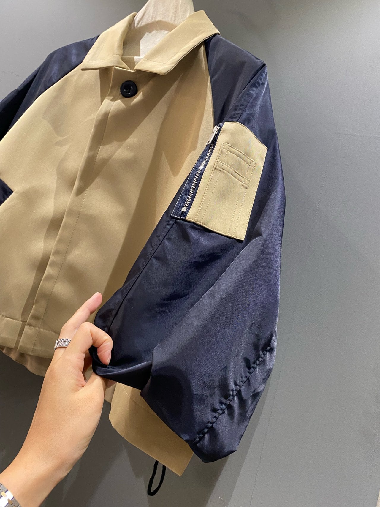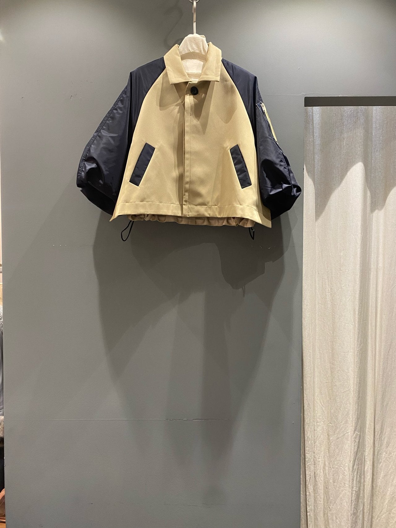 異素材ミックスと立体的なシルエットが魅力のジャケット。