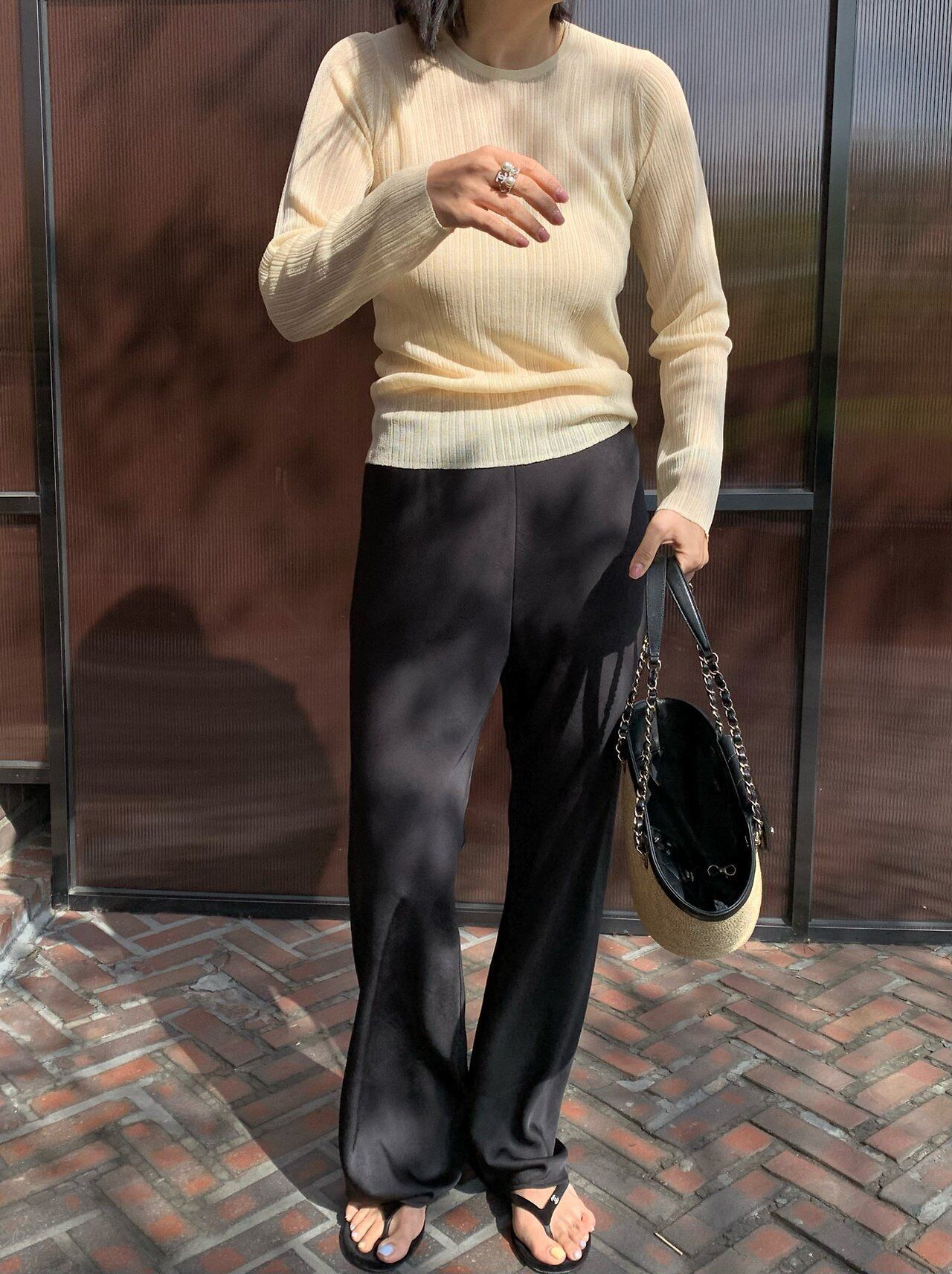 シンプルながらも上品な印象で、デニムやスラックス、スカートなど幅広いコーデに合わせやすい一枚。