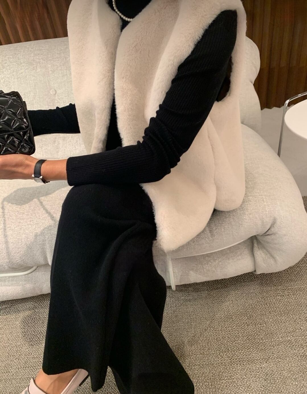 トレンドのジレ・ベストは秋冬にもまだまだ継続のフェイクファーベスト