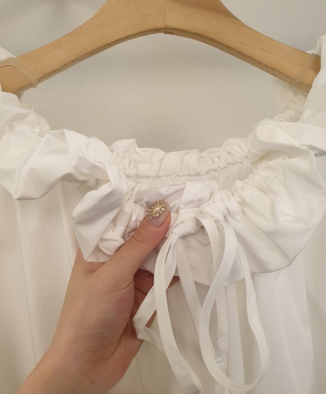 ネックラインをゴム仕様にすることで、着方のアレンジが楽しめるのも魅力の一つ。